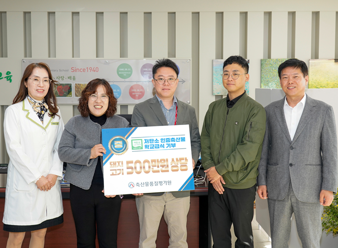 축산물품질평가원(원장 박병홍)은 지난 10일, 미래세대와 저탄소 인증 축산물의 가치를 공유하고자 아산시 4개 초등학교에 500만 원 상당 저탄소 인증 돼지고기를 기부했다.