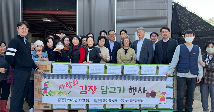 축산물품질평가원(원장 박병홍)은 지난 6일, 김장철을 맞아 농가 주부 모임과 함께 세종시 울여울 농장에서 ‘사랑의 김장 담그기’ 행사를 진행했다.