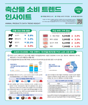 축산물품질평가원(원장 박병홍)은 축산물 구매자 소비 경향을 분석한 ‘축산물 소비 트렌드 인사이트’9월호 보고서를 발간했다.