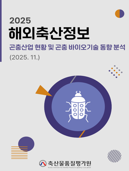 축산물품질평가원(원장 박병홍)은 지난 5일, 해외 곤충 바이오산업의 주요 기술과 사례를 종합적으로 담은 ‘2025년 해외 축산 정보: 곤충산업 현황 및 곤충 바이오 기술 동향 분석 보고서’를 발간했다.